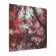 Espectaculares flores de cerezo rojo ramificadas de un viejo roble