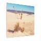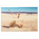 La imagen captura un paisaje desértico con dunas de arena blanca bajo un cielo azul claro. En primer plano, grumos de yuca seca con vaina de semillas añaden textura al terreno arenoso. Las dunas se extienden a lo lejos, creando una sensación de vastedad. En el horizonte se ve una gran variedad de montañas, lo que añade profundidad a la escena.