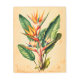 Impresión metalizado vintage de un pájaro de ilustracion de plantas paradisíacas sobre un fondo de pergamino color marrón.