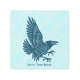 Una simple silueta azul de un cuervo vivo (Corvus corax) de estilo nórdico-celta, superpuesta a una imagen de fondo nevada. Personalizar agregando su propio texto.