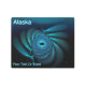 Una imagen fractal de tono azul que se asemeja a un grupo de ballenas en espiral bajo el hielo polar; tal vez ballenas beluga o minke que frecuentan los polos. El texto que dice "Alaska" aparece en azul brillante y blanco. Personalizar agregando su propio texto adicional.