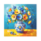Beautiful wall art with a beautiful impasto style ai illustration of blue and orange flowers in a fancy vase.