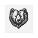 Black and white ink drawing of a bear's face in the subtle shape of a heart.