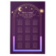 La mística Lavanda Rosa Sun Moon Stars Astronomía Cósmica Celestial Galaxia Espacial Boda Gráfico de asientos Metalizado La impresión tiene un sol, luna y estrellas de color arcoiris con un fondo opaco. Dentro del marco se encuentra el texto "Bienvenidos" en un guión elegante de caligrafía dorada y la información personalizada de la tabla de asientos de la recepción de bodas. Personalice editando el texto en los cuadros de texto proporcionados. Diseñado para usted por ©2024 Evco Studio www.zazzle.com/store/evcostudio