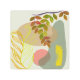 Diseño de boho botánico con colores magenta, verde, amarillo y marrón y elementos florales.