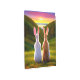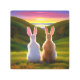 Ilustracion de dos conejos mirando juntos una hermosa puesta de sol.
