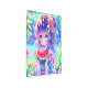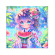 Bonito acuarela arte que representa a un lindo chica de anime con el pelo morado comiendo sandía en un caluroso día de verano.