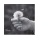 A gentle hand holds a dandelion ready to scatter in the wind. In black and white, the image captures the purity of a moment when a wish is released into the unknown — simple, fragile, and full of hope.