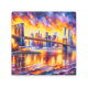 El puente de Brooklyn, una maravilla arquitectónica finalizada en 1883, simboliza la innovación industrial y la elegancia urbana. Sus amplios arcos y cables de acero conectan Brooklyn con Manhattan, encarnando el glamour atemporal y el significado histórico.Usando el estilo acrílico con tonos dorados y lavanda en esta maravillosa maravilla icónica.