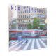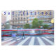 La imagen representa una escena borrosa del paisaje urbano de San Francisco con un enfoque en el movimiento. Un peatón cruza en primer plano una pasarela de cebra. Detrás del peatón, un autobús de tránsito rojo y plateado acelera, creando un efecto de desenfoque de movimiento. En el fondo, los edificios y los árboles son visibles, también borrosos debido al movimiento.