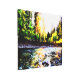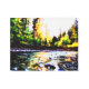Detalle hermoso de rocas, de árboles y de un río fresco ancho. Azules y verdes del alto contraste con blanco y negro. Fotografía pintada a mano.