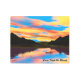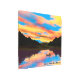 Una canoa cruza un lago montañoso que refleja los hermosos naranjas y azules de una colorida puesta de sol. Añade tu propio texto.
