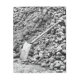 Un diseño fotográfico en blanco y negro del carbón y una pala de carbón que se utiliza para alimentar trenes de vapor.