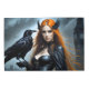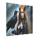 Pintura de una mujer de cabello rojo charlando con cuervos