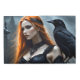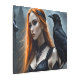 Pintura de una mujer de cabello rojo charlando con cuervos