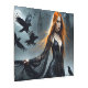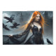 Pintura de una mujer de cabello rojo charlando con cuervos