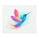 Colibrí luminoso, irrisorio, exótico volador sobre fondo blanco, pintado con pintura multicolor, acuarela. Colibrí arcoiris.