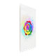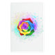 Large, blooming rose with rainbow petals on white background, painted over with splashes of colorful, bright paint. 3d