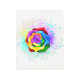 Large, blooming rose with rainbow petals on white background, painted over with splashes of colorful, bright paint. 3d