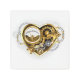 Corazón mecánico, volumétrico, de vapor punk con manómetro de presión, acero y engranajes dorados sobre fondo blanco. Estilo Steampunk.
