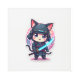 Impresión En Metal Cyber Samurai Cat - Kawaii Chibi Wall Art