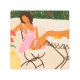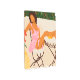Una figura relajada en salones de vestimenta rosa en un patio iluminado por el sol, rodeado de exuberante vegetación y vibrantes flores. Esta obra de arte captura la calidez y la tranquilidad de una tarde de verano mediterránea.