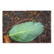 Una hoja verde solitaria se sienta sobre el mantillo, acoplada con rocío. ¡Envíen algo de calma natural a alguien hoy!