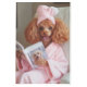 Una imagen hiper realista de un caniche con encanto, relajado en un albornoz rosa con una toalla a juego en la cabeza. El adorable perro está cómodamente sentado en una silla, sosteniendo una revista con otro caniche en la portada. Su expresión lúdica y su lujoso entorno spa hacen de este lugar un lugar agradable y divertido.