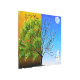 Dos estaciones, Un árbol es un dibujo digital original que evolucionó desde un fondo positivo/negativo. A la izquierda hay una velada de verano estival con un cielo naranja, un sol brillante y hojas verdes, con una bandada de pájaros volando. A la derecha, el mismo árbol en invierno, cuando la luna se levanta en una velada nevada. Con un cardenal y un muñeco de nieve feliz. El diseño se transferirá bien a cualquier tamaño 16x20 o menor. Los colores serán más brillantes cuando no estén en metalizado.