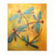 Magníficas libélulas aladas azules y de bronce sobre un fondo dorado y oscuro.