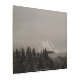 Fotografía del paisaje sepia de la nieve cubierta por el Monte Rainier. El cielo está cubierto de nubes. La niebla se eleva desde las colinas cercanas. Los árboles crecen en primer plano. Derechos reservados ©2023 Kimberly J Tilley. zazzle.com/store/developingnature.