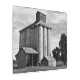 This black and white image captures a striking rural industrial scene, featuring towering rural grain silos and their weathered outbuildings. The monochrome style enhances the textures of aged concrete, corrugated metal, and overgrown grass, evoking a sense of quiet history and resilience in the Australian countryside. Atop the silos sits a central tower, likely housing machinery for grain handling and distribution. Flanking the silos are two smaller buildings with corrugated metal roofs, possibly used for storage or operational support. The surrounding landscape is open and grassy, dotted with a few trees, reinforcing the agricultural setting. This image blends rustic charm with industrial character, making it ideal for farmhouse décor lovers, rural landscape enthusiasts, and anyone who appreciates timeless agricultural architecture.