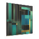 Las líneas doradas y los bloques en tonos verdes, azules y negros se despliegan en una sinfonía visual de equilibrio y sofisticación. La pieza transmite modernidad y profundidad, como un laberinto luminoso que guía el ojo por caminos de pura armonía abstracta.