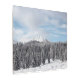 Fotografía de un paisaje de larga exposición de un impresionante paisaje invernal con nubes lechosas, montañas nevadas y bosque de abeto.