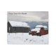 Escena rural, invernal, con un camión rojo, ruinoso, con nieve, sentado cerca de una cabaña destartalada cerca de Sandpoint, ID. Añade tu propio texto.