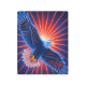 This stunning piece features a magnificent bald eagle, its wings and feathers outlined in a brilliant blue and red neon glow. Explosive red light rays radiate from behind, creating an intense feeling of power and energy against a deep starry background.
