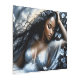 Pintura de un chica y flores