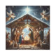 Esta hermosa y festiva escena de la Natividad es una adición perfecta a la decoración de sus Navidades. La obra de arte incluye a la Sagrada Familia, María, José y el bebé Jesús, rodeados de ángeles y pastores adoriles. La escena está puesta en un telón de fondo de estrellas brillantes y una estrella brillante, simbolizando el nacimiento de Cristo. Esta imagen atemporal nos recuerda el verdadero significado de los Navidades.