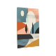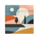 Un paisaje abstracto de desierto con líneas y formas en tonos marrones, naranjas, turquesas, beige, marrón y negro.