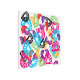 Diseño abstracto que simboliza el punto en común de España y Nueva Zelanda por ser antípodas. Las rodajas de kiwi neozelandeses se confunden con los abanicos españoles, con el color rojo pasión y tonos rosas de España, el azul del Mediterráneo y el verde de Nueza Zelanda.