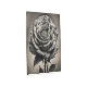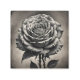 Flor de rosa blanca y negra con tallo y hojas dibujos de arte de carbón.