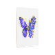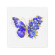 Joyería, azul, zafiro, mariposa floral brillante con ala decorada con flores azules y preciosas con hojas de oro sobre fondo blanco.