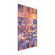 Esta moderna impresión metalizado cuenta con una cautivadora cuadrícula de bloques coloridos, cada uno de los cuales muestra una transición suave de tonalidades frescas a cálidas. Los azules profundos se mezclan en naranjas vibrantes, mientras que las violetas ricas se desvanecen en amarillos suaves, creando profundidad y movimiento visual.