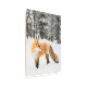 Pezo rojo con cola espesa en la fría nieve blanca. El bosque de pinos verdes de fondo. Bonita naturaleza.