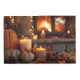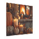 Vida residual de una rústica imagen de caída de velas, calabazas y una chimenea.