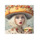 Una mujer divertida con un gorra de sándwich de champiñones y un sándwich en sus manos IA generó arte