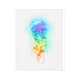 Grandes medusas de azulejo brillantes, de dibujos artísticos, con largos tentáculos en blanco, pintadas con fondo multicolor de acuarela. Mariscas arcoiris.