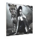 Pintura de una chica con su leopardo