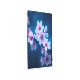 This unique piece blends ethereal, soft light with a sharp, modern style. Delicate sakura flowers with soft pink centers are outlined in a brilliant, glowing blue neon light, all set against a deep, dreamy blue background.