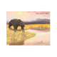 A digital painting of a grizzly bear approaching a pond while the sun descends over distant mountains. Customize by adding your own text.